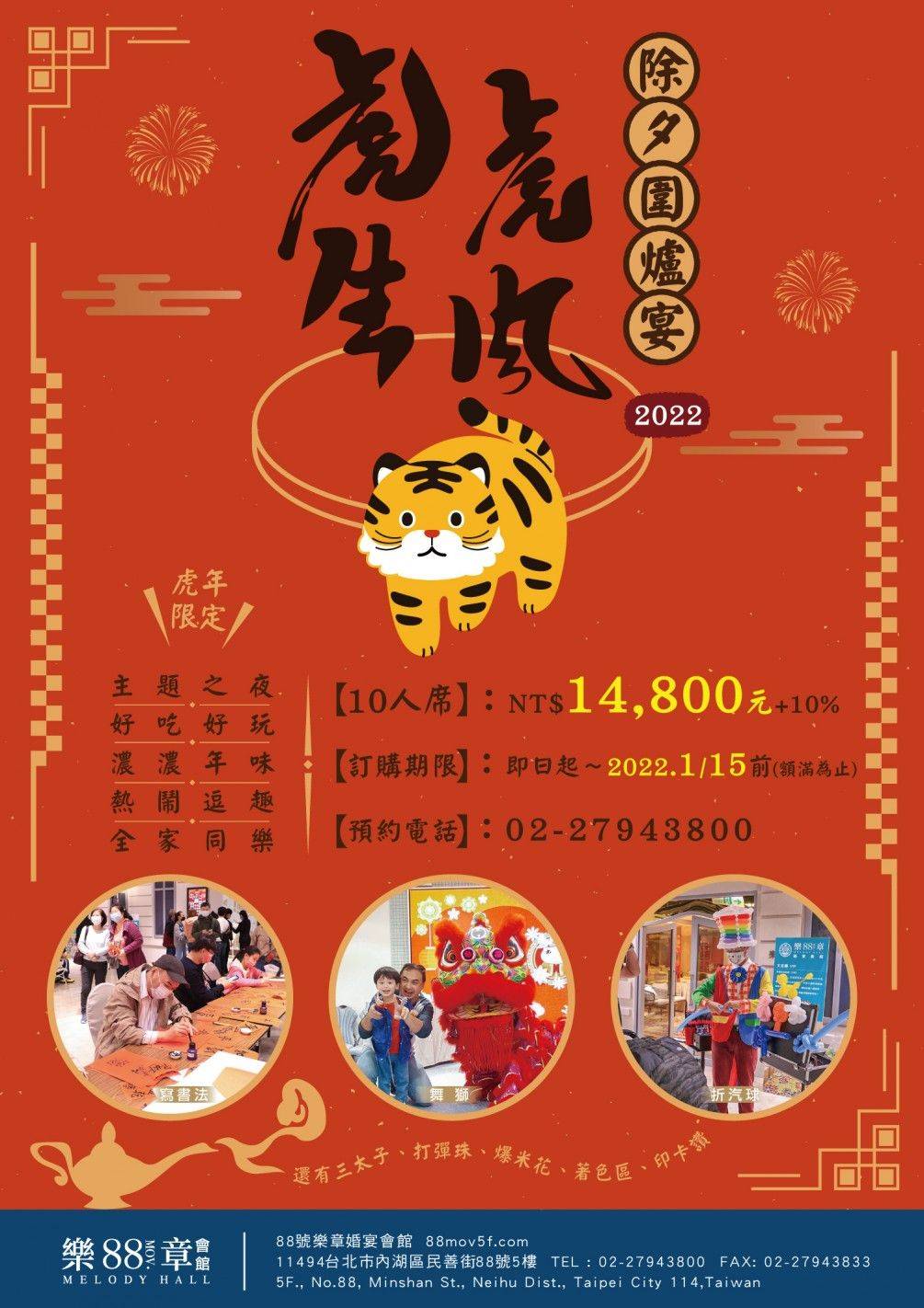 1、訂購日期:即日起至2022/1/15前完成全額支付,訂位才算完成,恕無法指定廳別座位,額滿為止。