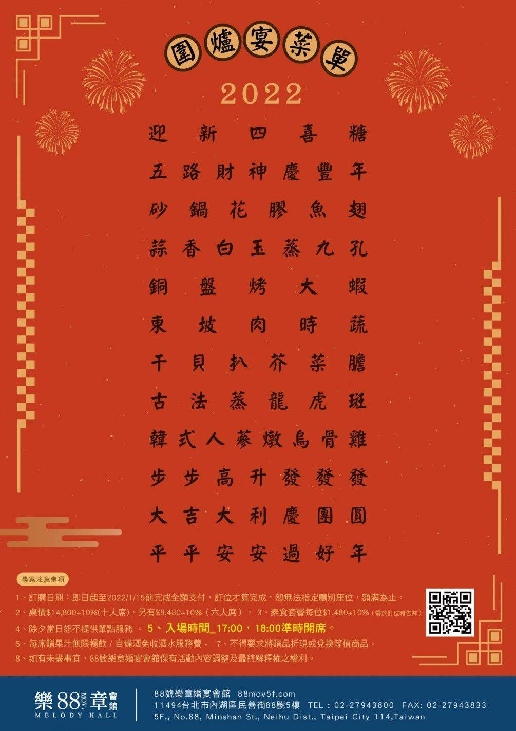 8、如有未盡事宜,88號樂章婚宴會館保有活動內容調整及最終解釋權之權利。