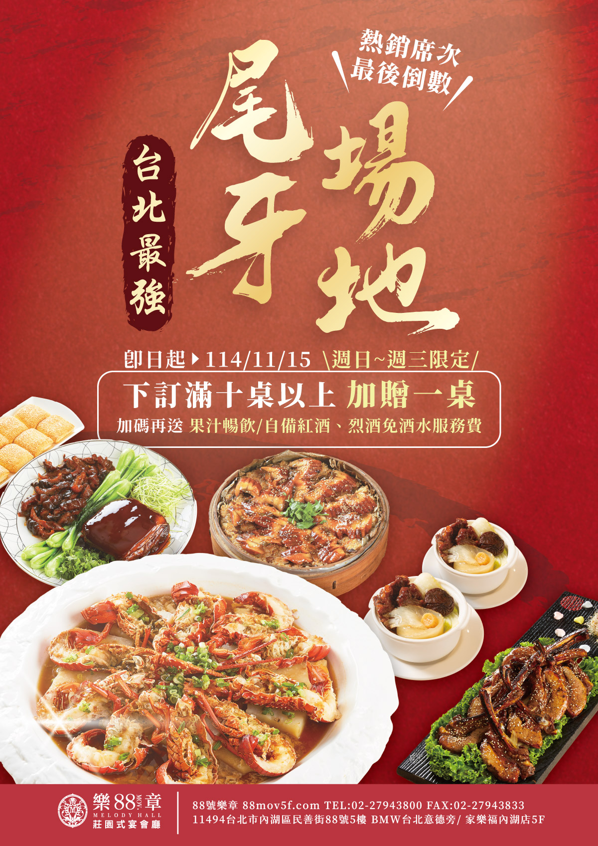 2. 活動需保證席開含10桌以上第11桌即可現抵,且達到各廳低消平日$9,800+10%起。