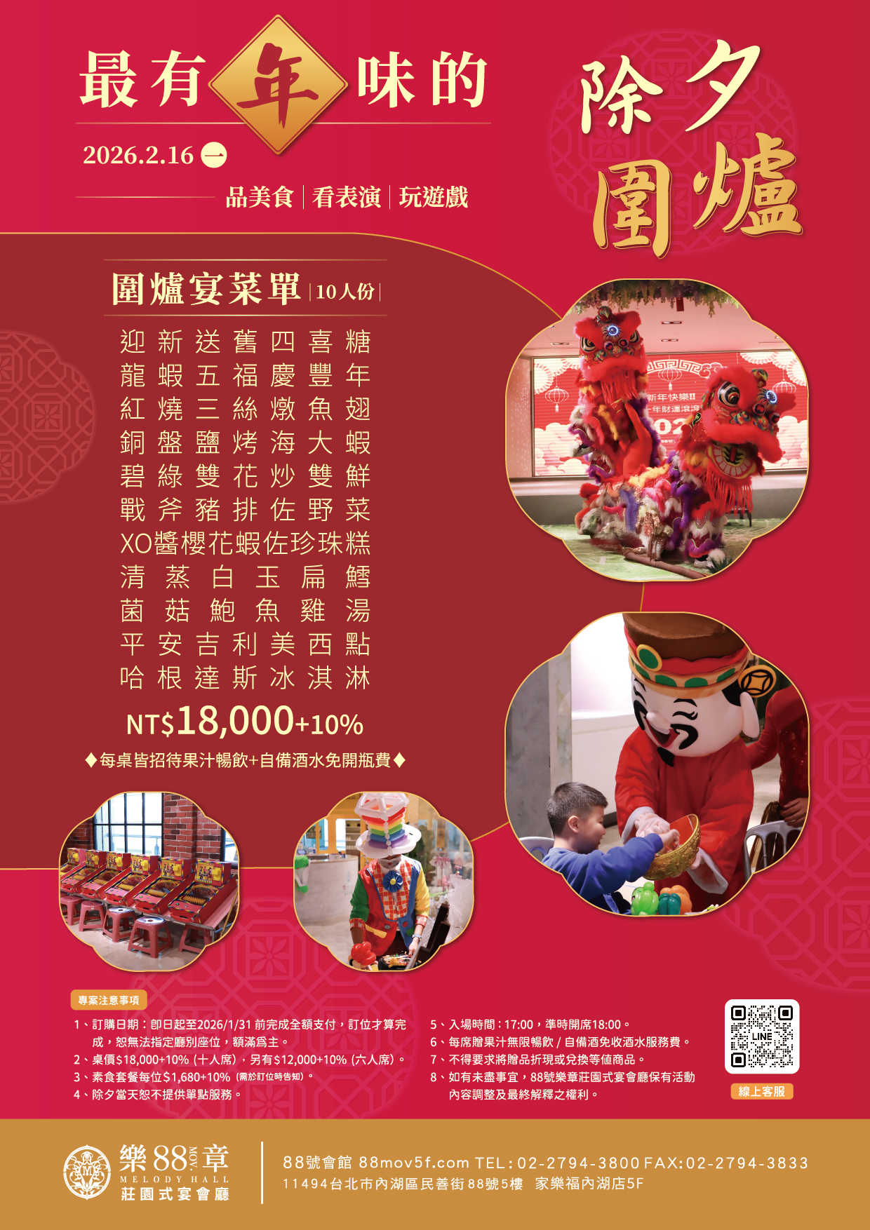 8. 如有未盡事宜,88號樂章莊園式宴會廳保有活動內容調整及最終解釋之權利。